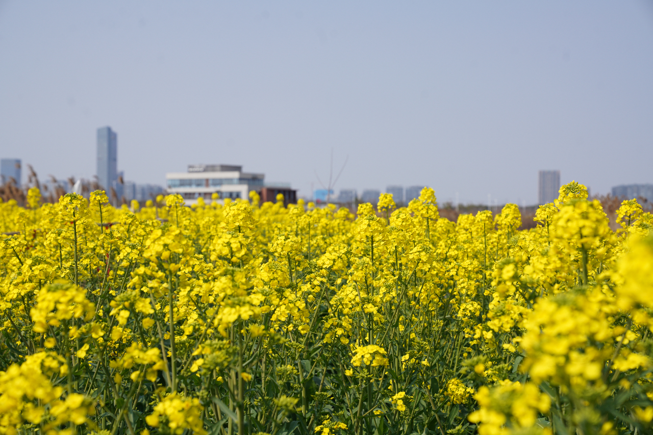 是油菜花在太湖边的金色浪潮